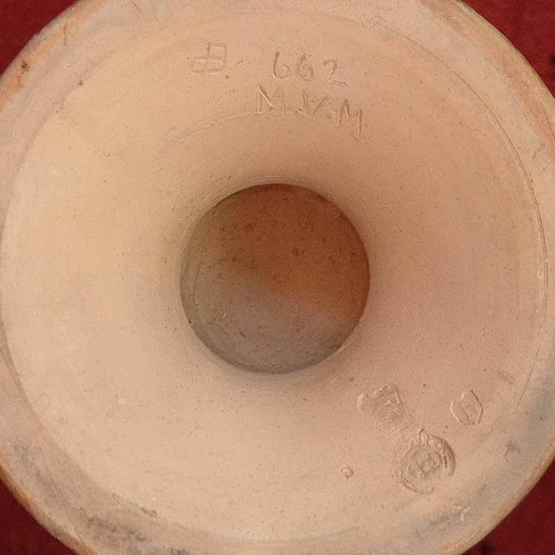 This statuesque 13.25in (34.5cm) Doulton Lambeth vase shows Mark V Marshall at his best. Made in the first decade of the 20th century, the design of the vase is well in advance of its period. Who would not believe that it was the product of the 1930s? The vase weighs 2163g. |