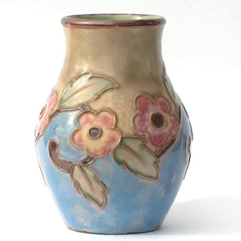 vera Huggins - A Royal Doulton 11.5cm (4.5in) Art Nouveau vase – 118A gem of a vase by this designer who was always able to produce vases that were completely different from the ‘run-of-the-mill’ designs of the period... |